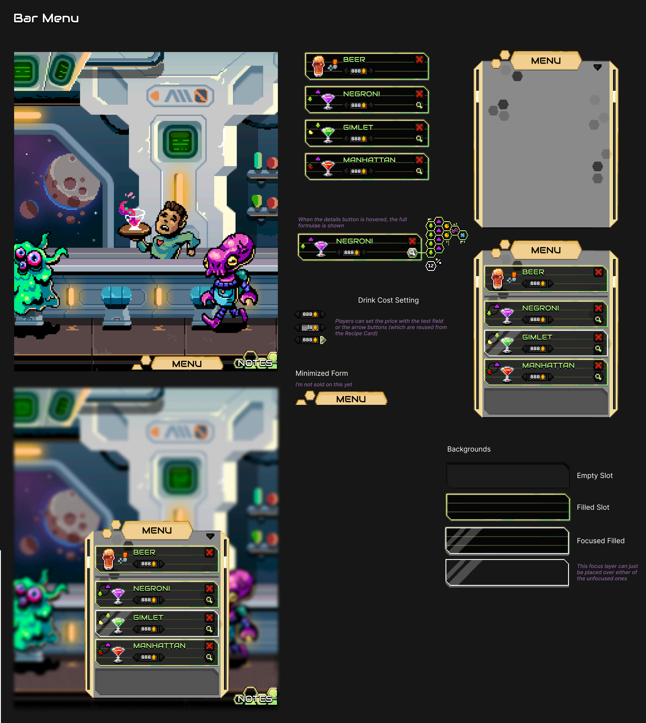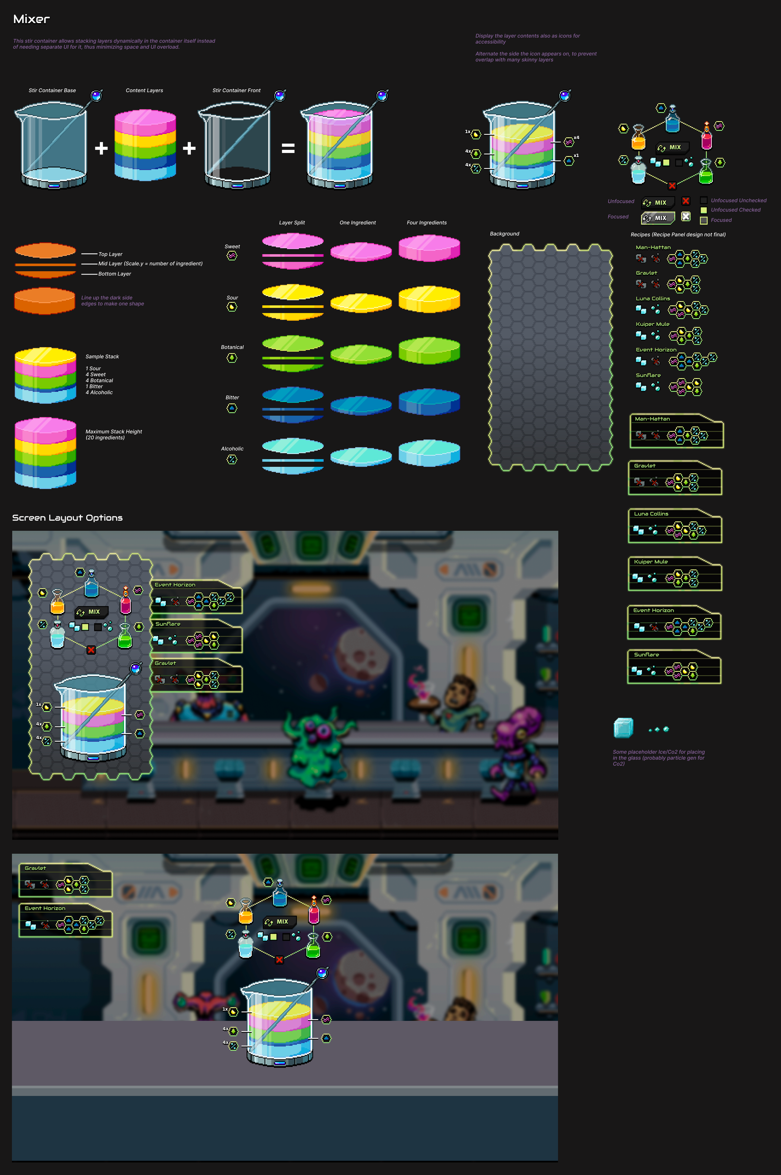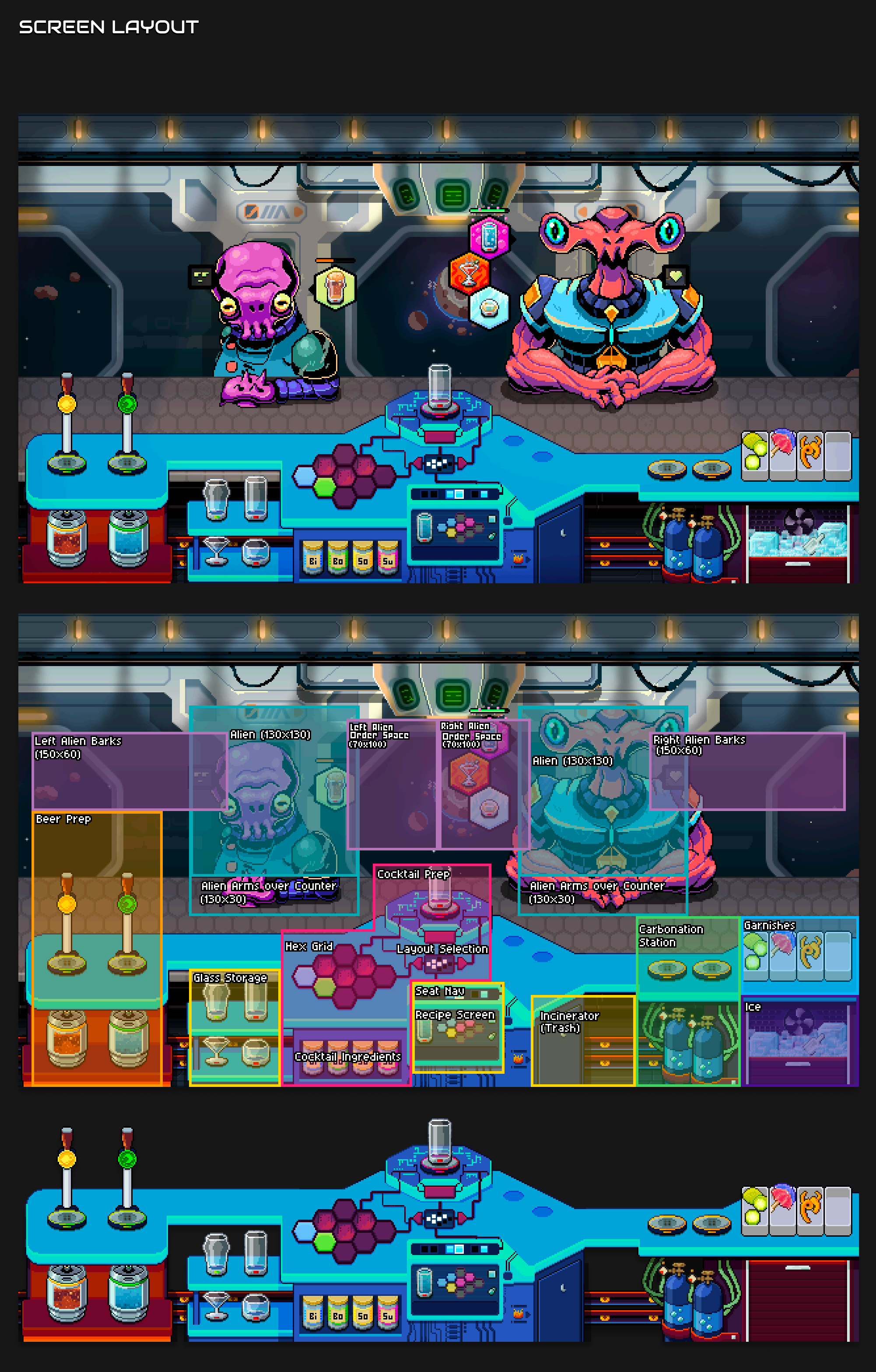 Last Call is the working title for a sci-fi bartending sim vertical slice. This is Surco Games’ first project and is developed by a team of 6 (myself as UI/UX, the founder, a sound designer, an engineer, a game designer, and a character/background artist).
