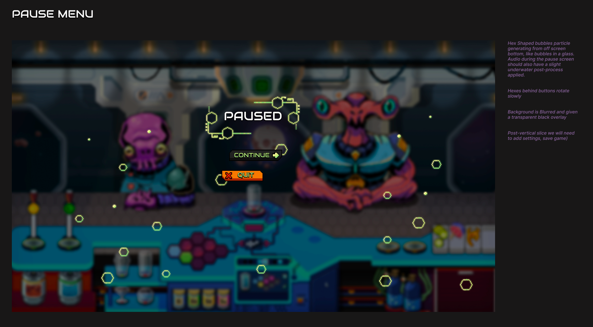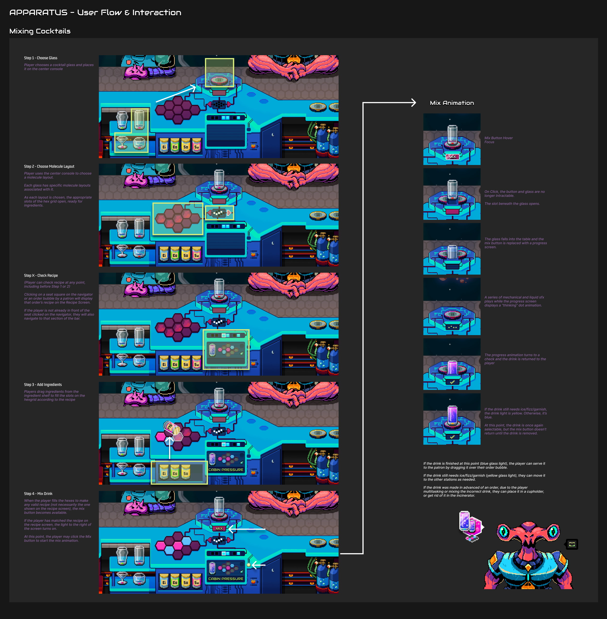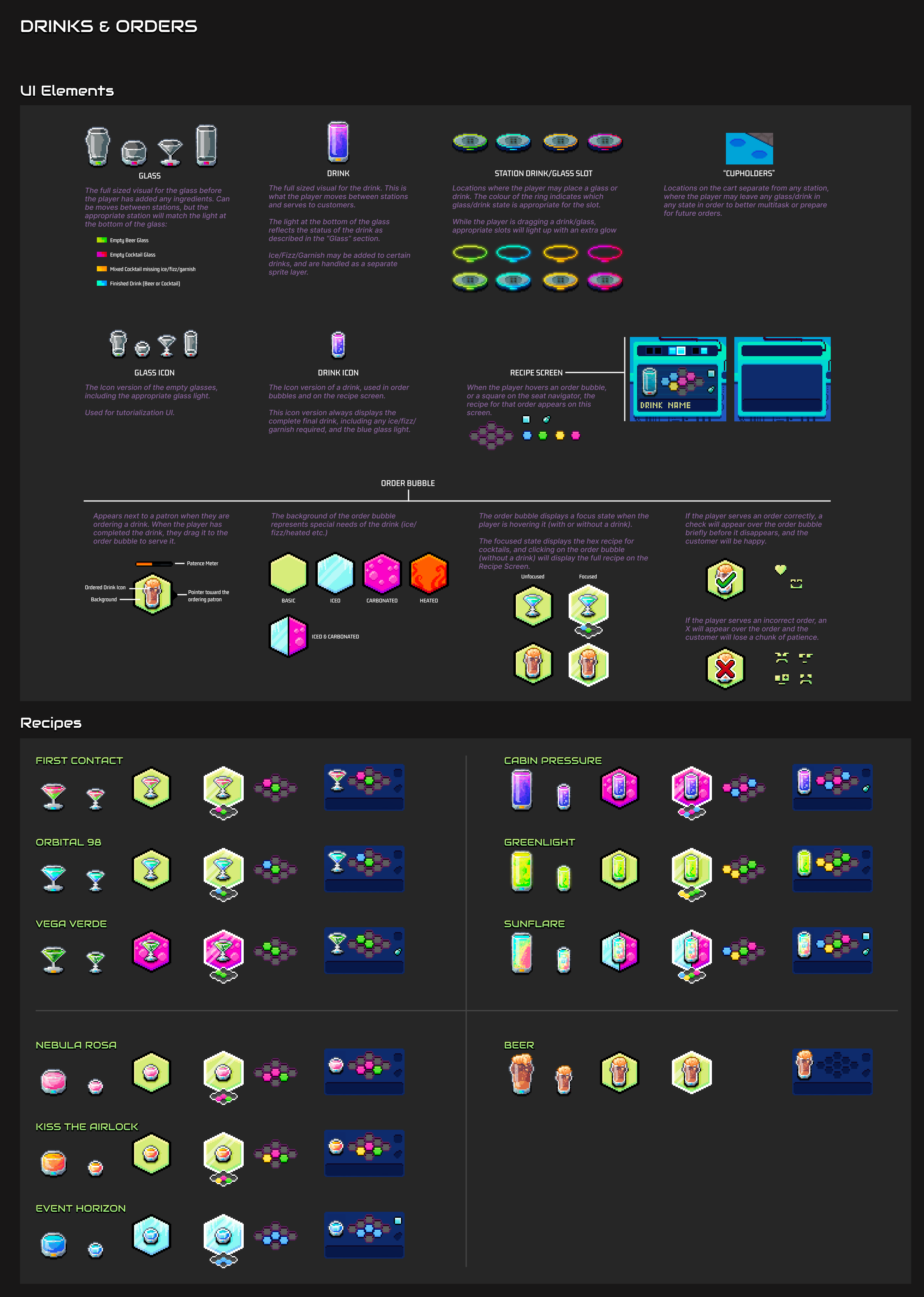 Last Call is the working title for a sci-fi bartending sim vertical slice. This is Surco Games’ first project and is developed by a team of 6 (myself as UI/UX, the founder, a sound designer, an engineer, a game designer, and a character/background artist).